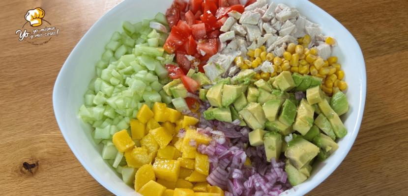 Ensalada completa como plato único para comerReceta de Yo, yo misma y mis cosasPublicada en Ensaladas Ver la receta paso a paso Quizás te interesen también estas recetasEnsalada de patata con bacon y salsa rancheraLa Cocina de MasitoTartar de salmón con mango y aguacateCaceroladasEnsalada de garbanzos con mangoLa Cocina de MasitoPipirranaAnna Recetas FácilesEmpedrat, ensalada de alubias y bacalaoMis Cosillas de CocinaEnsalada César de quesoAnna Recetas Fáciles