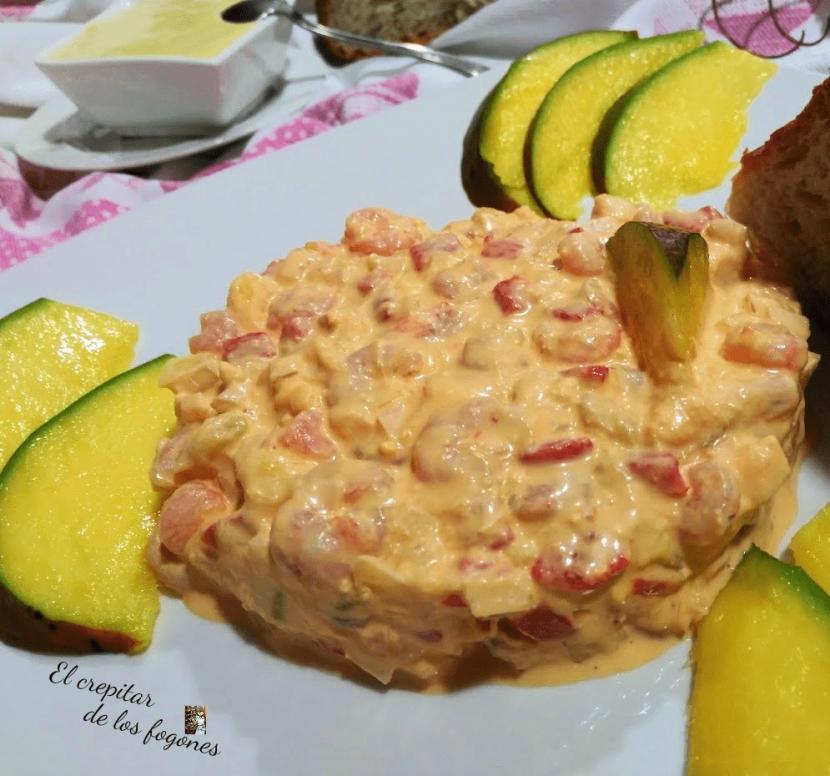 Ensaladilla de mango y gambas con mayonesa de miel y mostaza