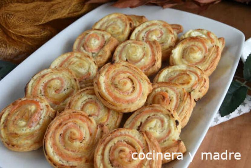 Espirales de hojaldre queso y salmón ahumado