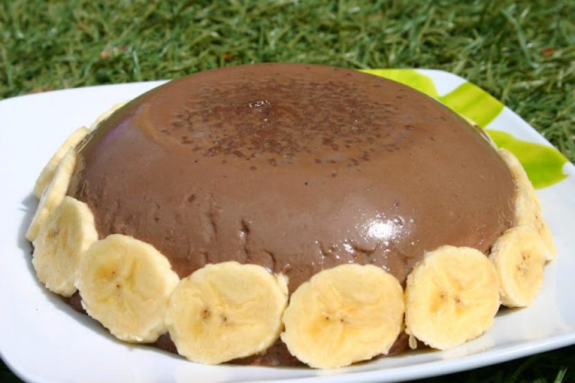 Flan sin huevo de chocolate y platano