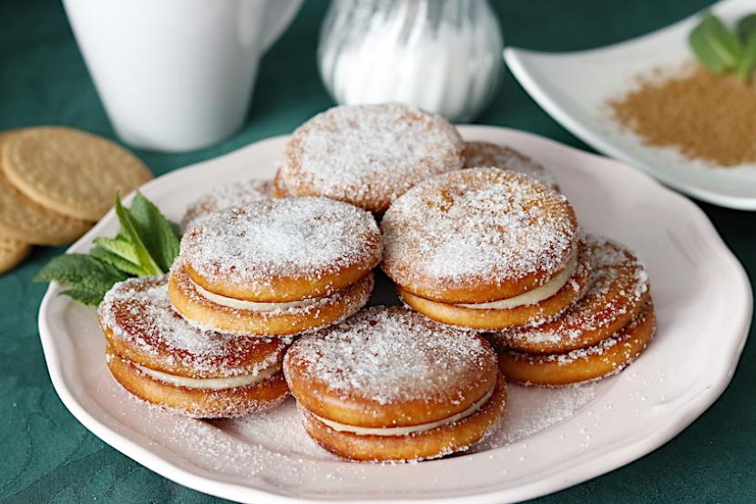 Galletas fritas rellenas de flan
