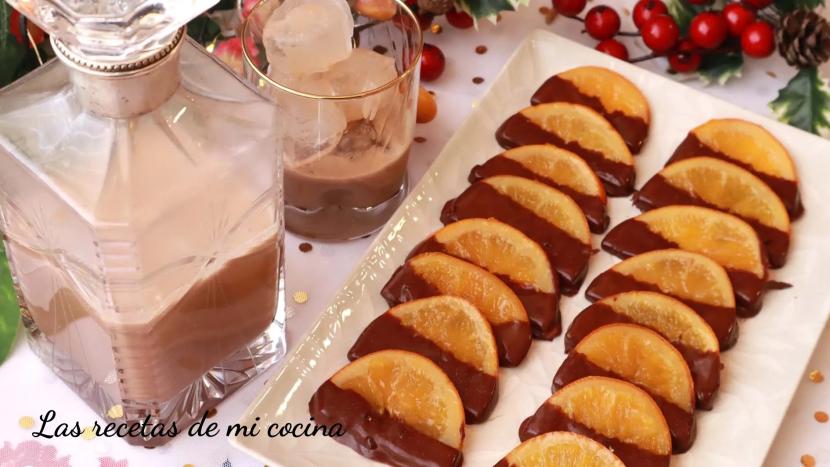 Naranjas confitadas con chocolate y baileys casero