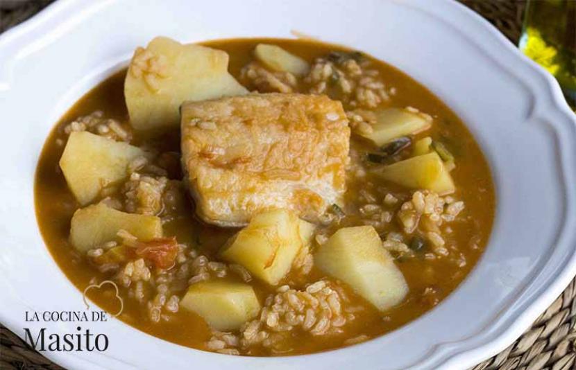 Patatas con arroz y bacalao