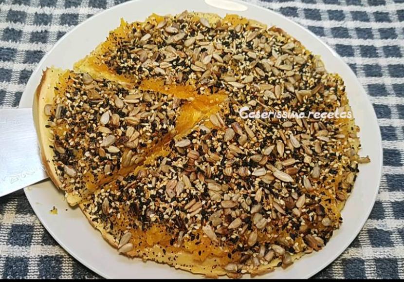 Pizza vegana de calabaza y semillas apta celíacos y diabéticos en sartén