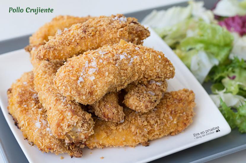 Pollo crujiente al hornoReceta de Eva en pruebasPublicada en Carnes, pollo y otras aves Ver la receta paso a paso Quizás te interesen también estas recetasAbóndigas con tomateJulia y sus RecetasTernera al chocolateJulia y sus RecetasTiras de pollo fritoAnna Recetas FácilesConejo al ajillo receta fácil y tradicionalcocineraymadreCallos de ternera en salsa:La cocina de Merche BorjasLomo de cerdo en salsa de vinoLa Cocina de Masito