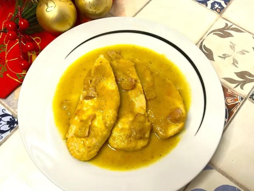 Pollo jugoso en salsa de yogur y naranja