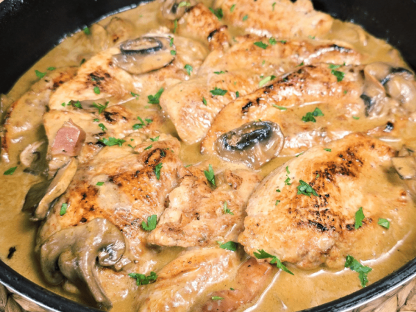 Delicioso pollo cremoso al vino