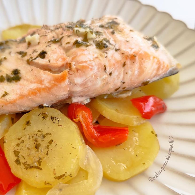 Lubina a la espalda jugosa con patatas y ajada: receta fácil