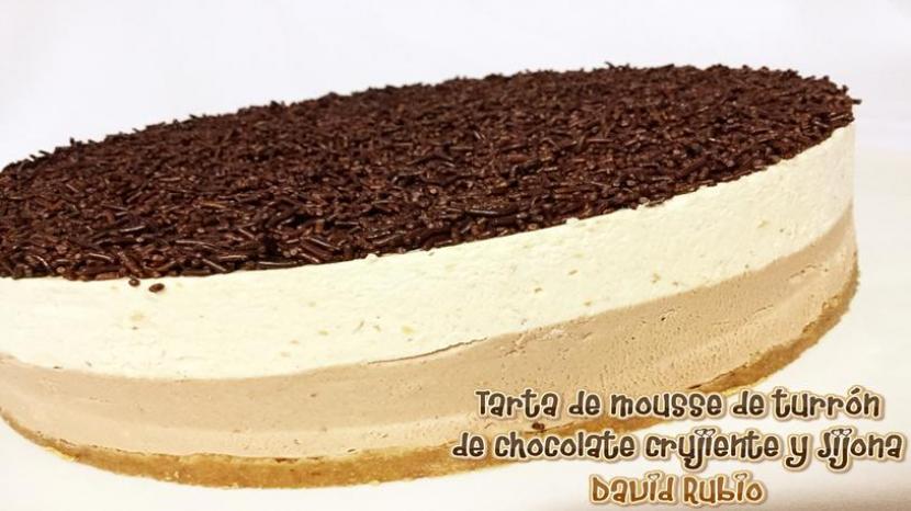 Tarta de mousse de turrón de chocolate crujiente y jijona