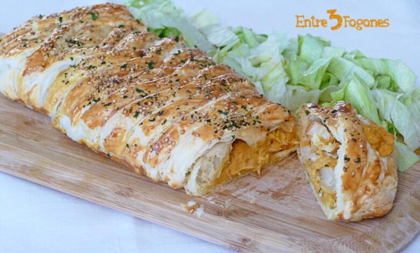 Trenza de hojaldre rellena de carne y verduras con bechamel