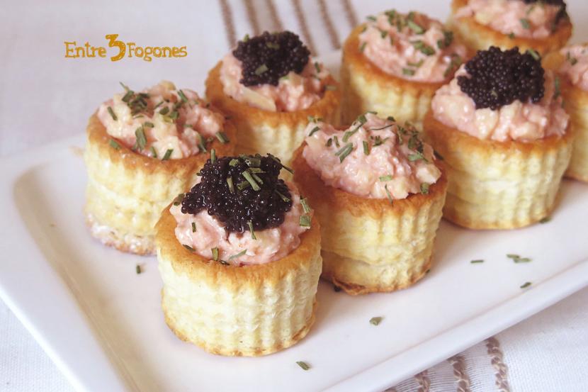 Volavanes rellenos de cangrejo y manzana con salsa rosa