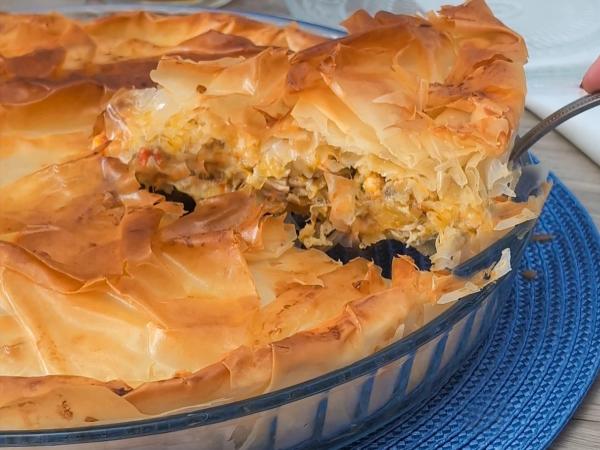 Pastel de pollo griego con masa crujiente: descubre la kotopita