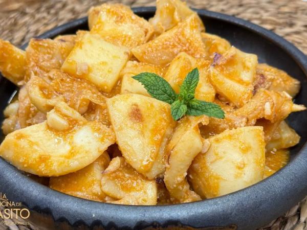 Lubina a la espalda jugosa con patatas y ajada: receta fácil