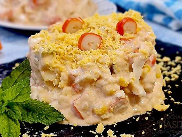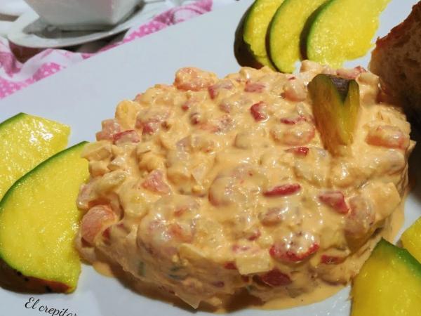 Ensaladilla de mango y gambas con mayonesa de miel y mostaza