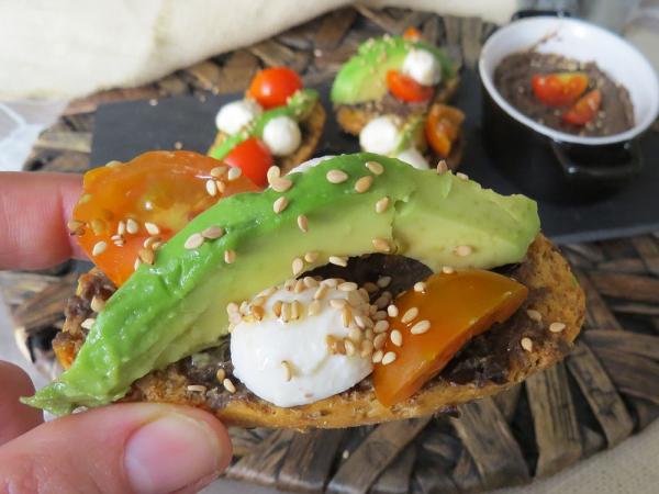 Montaditos de sobrasada, cebolla caramelizada y huevo de codorniz
