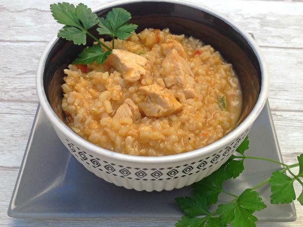 ARROZ CALDOSO CON POLLO A LA MOSTAZA
