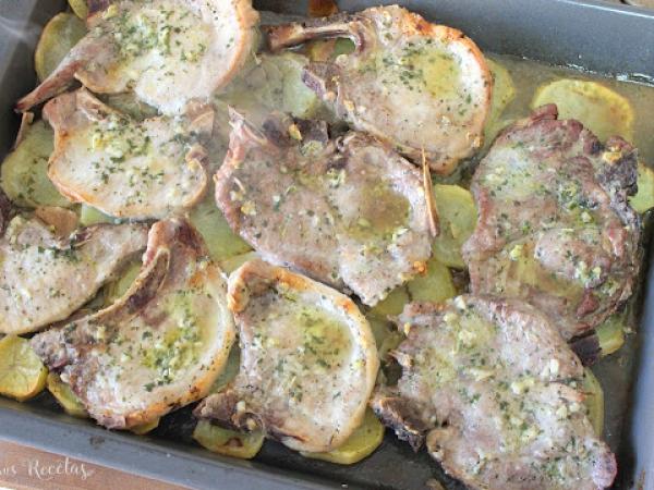 Chuletas de cerdo al horno con patatas