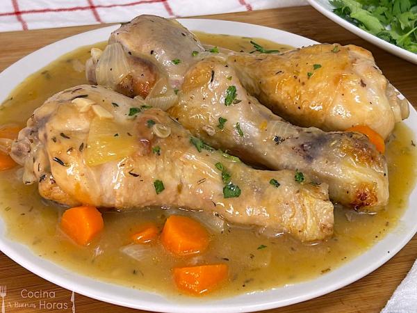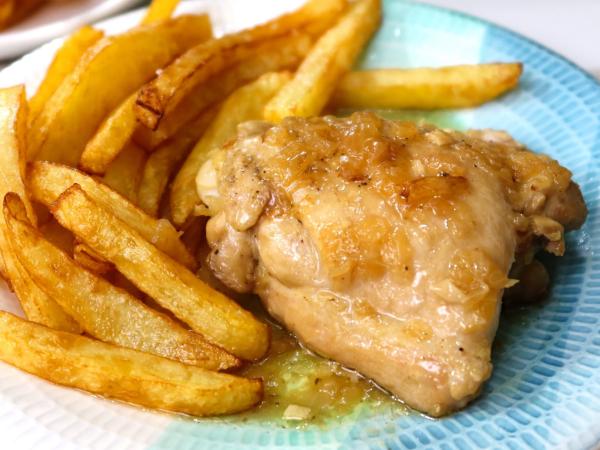 Contramuslos de pollo en salsa de cebolla