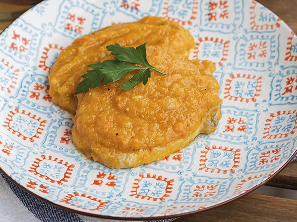 Chuletas de cerdo a la mostaza con peras caramelizadas