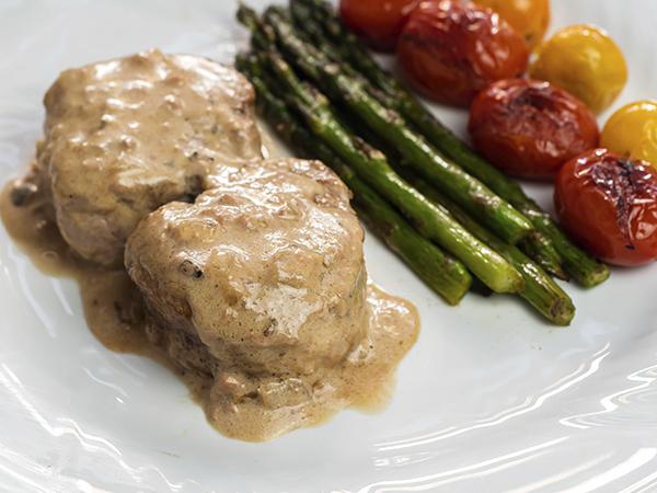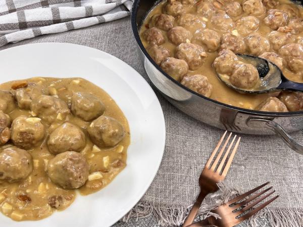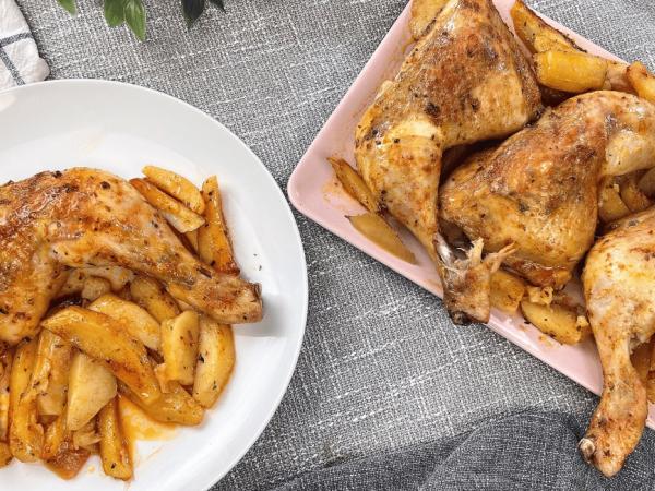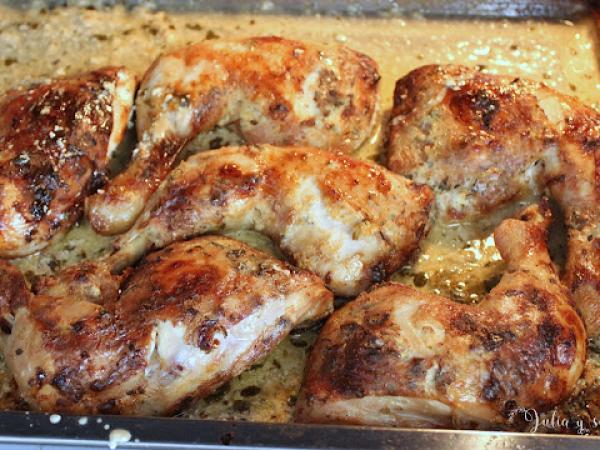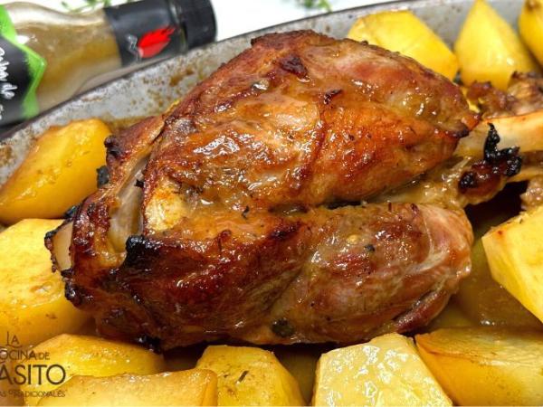 Jamoncitos de pollo al horno en salsa de cebolla al oporto