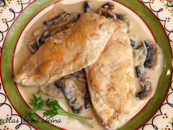 Pollo con nata y champiñón