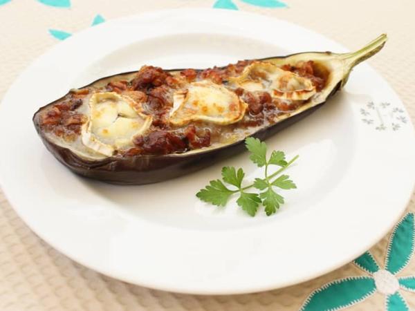 Berenjenas rellenas de lomo y queso de cabra al estilo chino