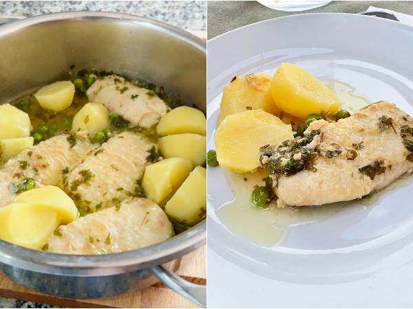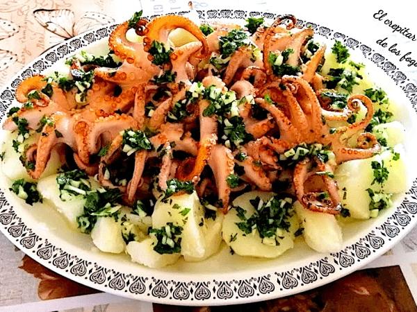 Pulpitos con patatas cocidas y aceite de ajo y perejil