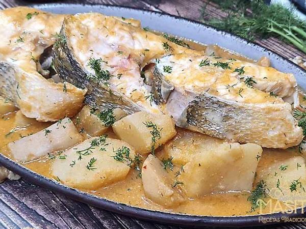 Lubina con patatas guisadas. ¡deliciosa!