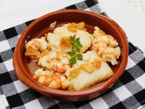 Bacalao con gambas al ajillo