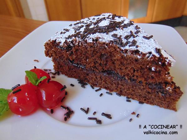 Bizcocho de chocolate y azúcar moreno relleno de mermelada