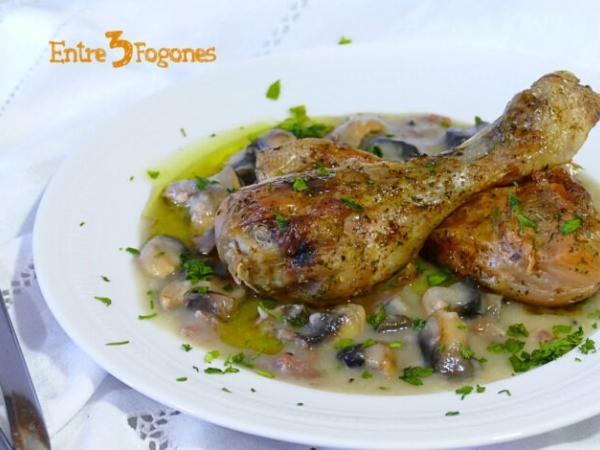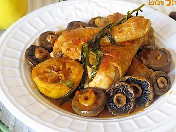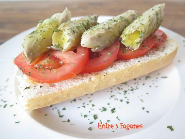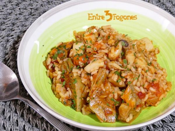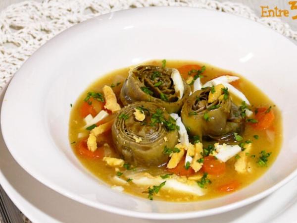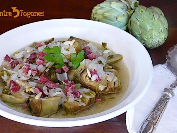 Alcachofas frescas en salsa de verduras y champiñones con jamón serrano