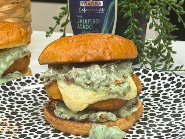 Hamburguesa de pollo con salsa de jalapeño asado