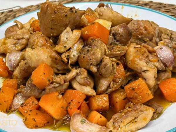 Pollo al ajillo con calabaza especiada