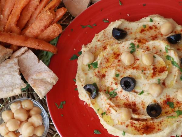 Hummus de garbanzos perfecto y bien acompañado (videoreceta)