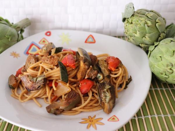 885° receta: espaguetis integrales con pollo y alcachofas