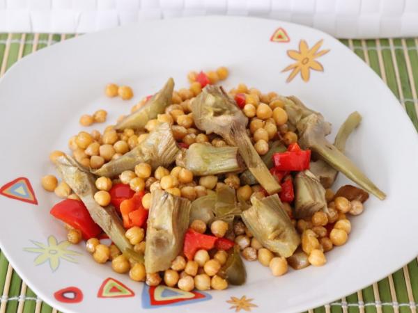 Garbanzos salteados con alcachofas y ras el hanout