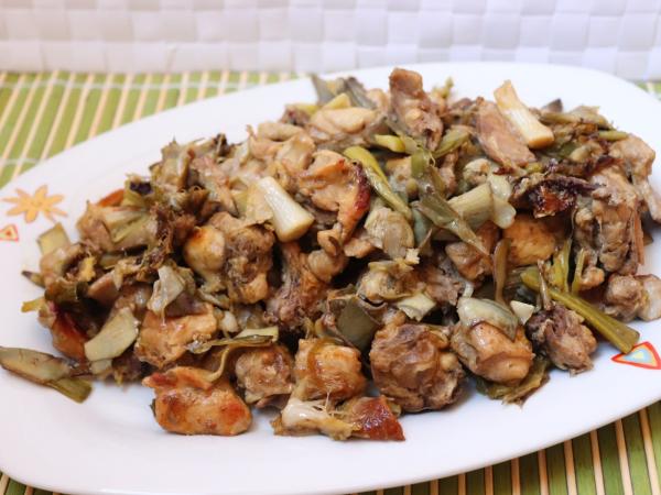 Receta: conejo con ajos tiernos y alcachofas