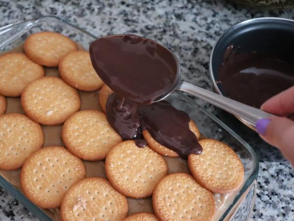 Tarta de galletas y crema pastelera de café