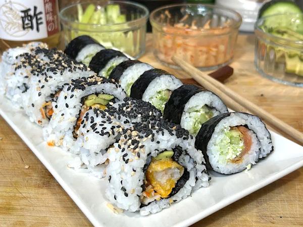 Sushi | uramaki de langostinos en tempura y maki de salmón ahumado