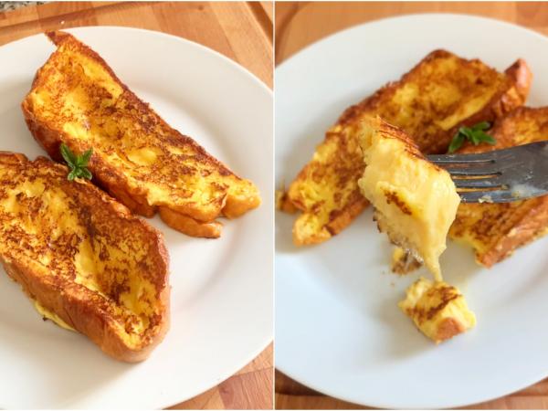 Torrijas de rosca o pan de brioche, tostadas francesas o torrejas en sartén sin aceite