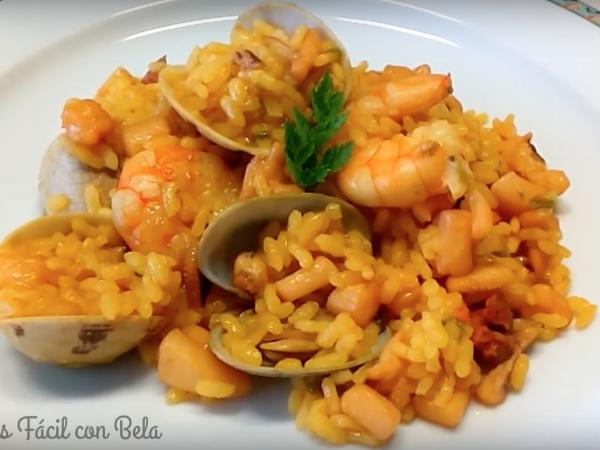 Arroz con calamares, almejas y langostinos