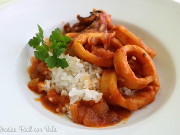 Arroz con calamares en salsa de tomate