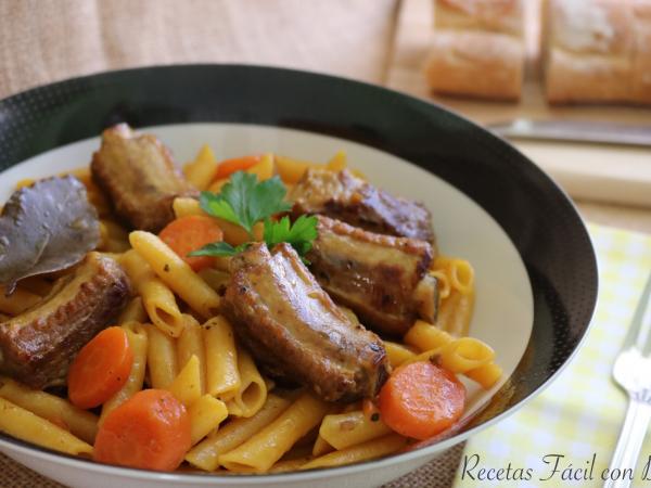 Guiso de macarrones con costilla de cerdo
