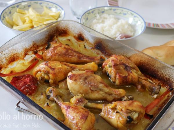 Como hacer pollo al horno con arroz y patatas