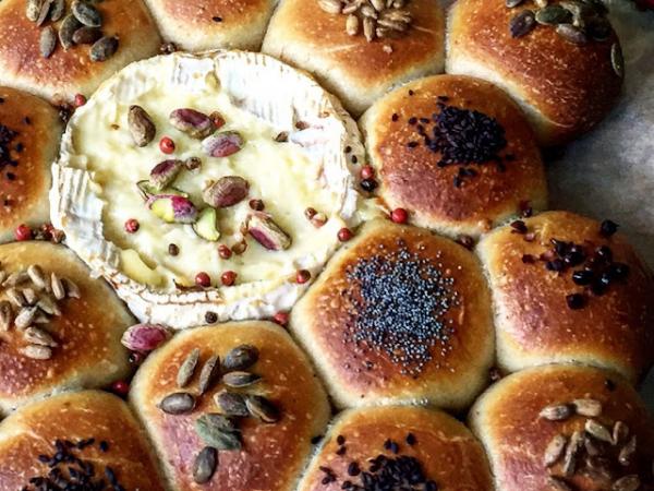 Panecillos de yogurt y miel con camembert.